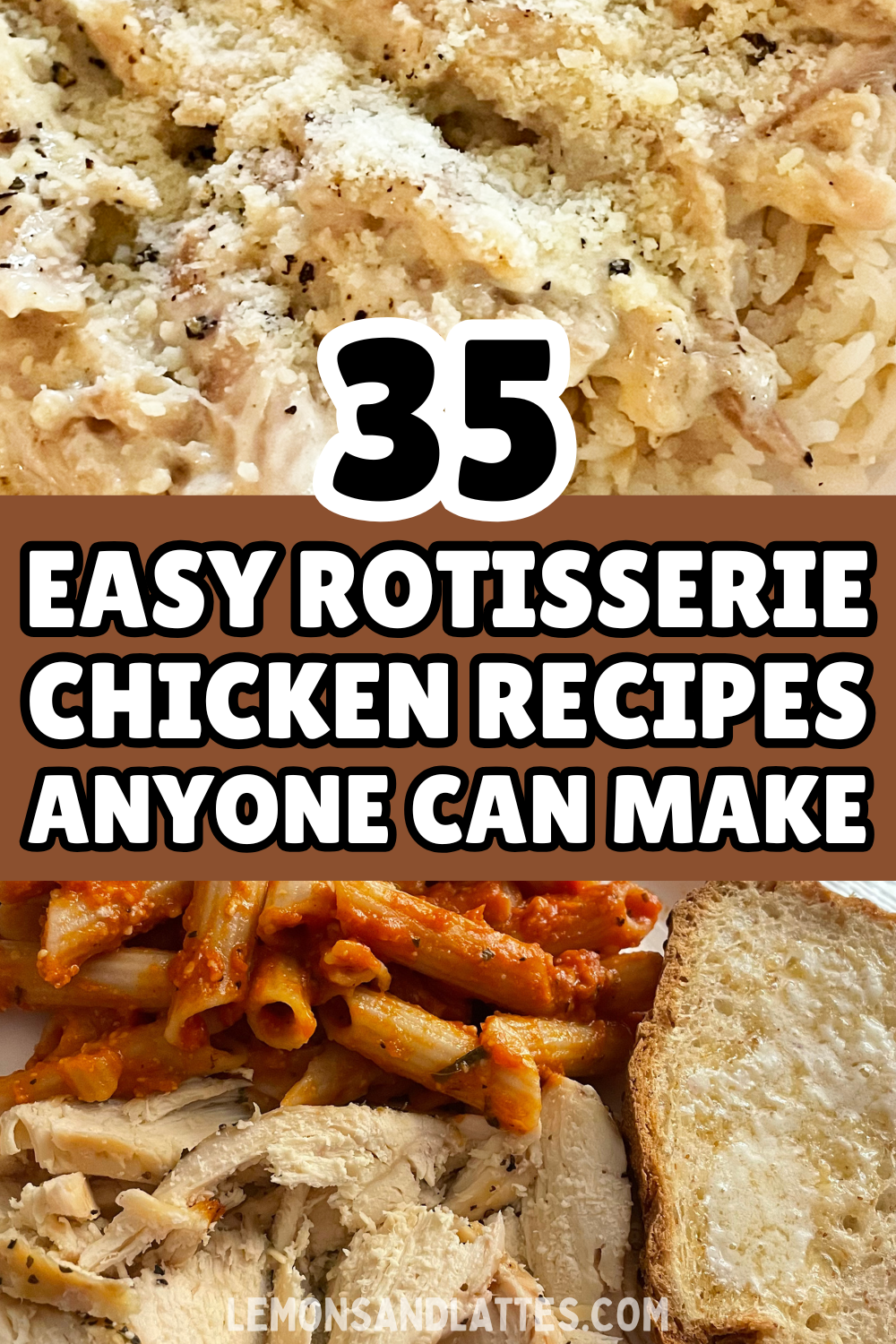 35 easy rotisserie chicken recipes pin1 This post may contain affiliate links. Please read my disclosure for more info.