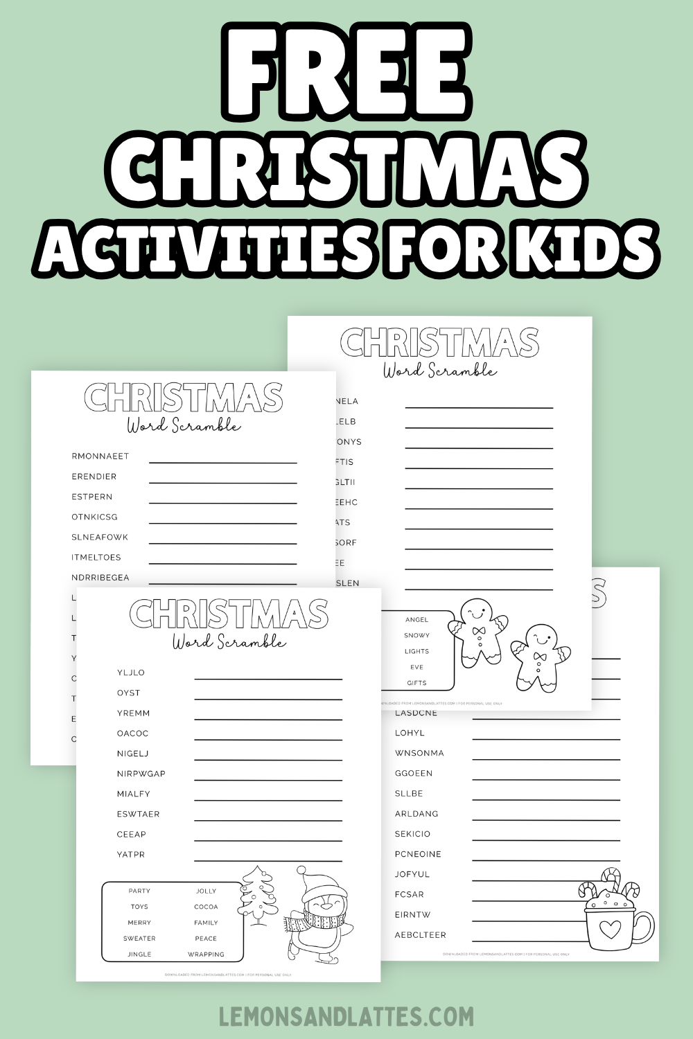 These Christmas word scrambles are a fun little challenge for kids who love word games. They can try to unscramble each holiday word and then color the cute Christmas pictures when they’re done. Answers are included!