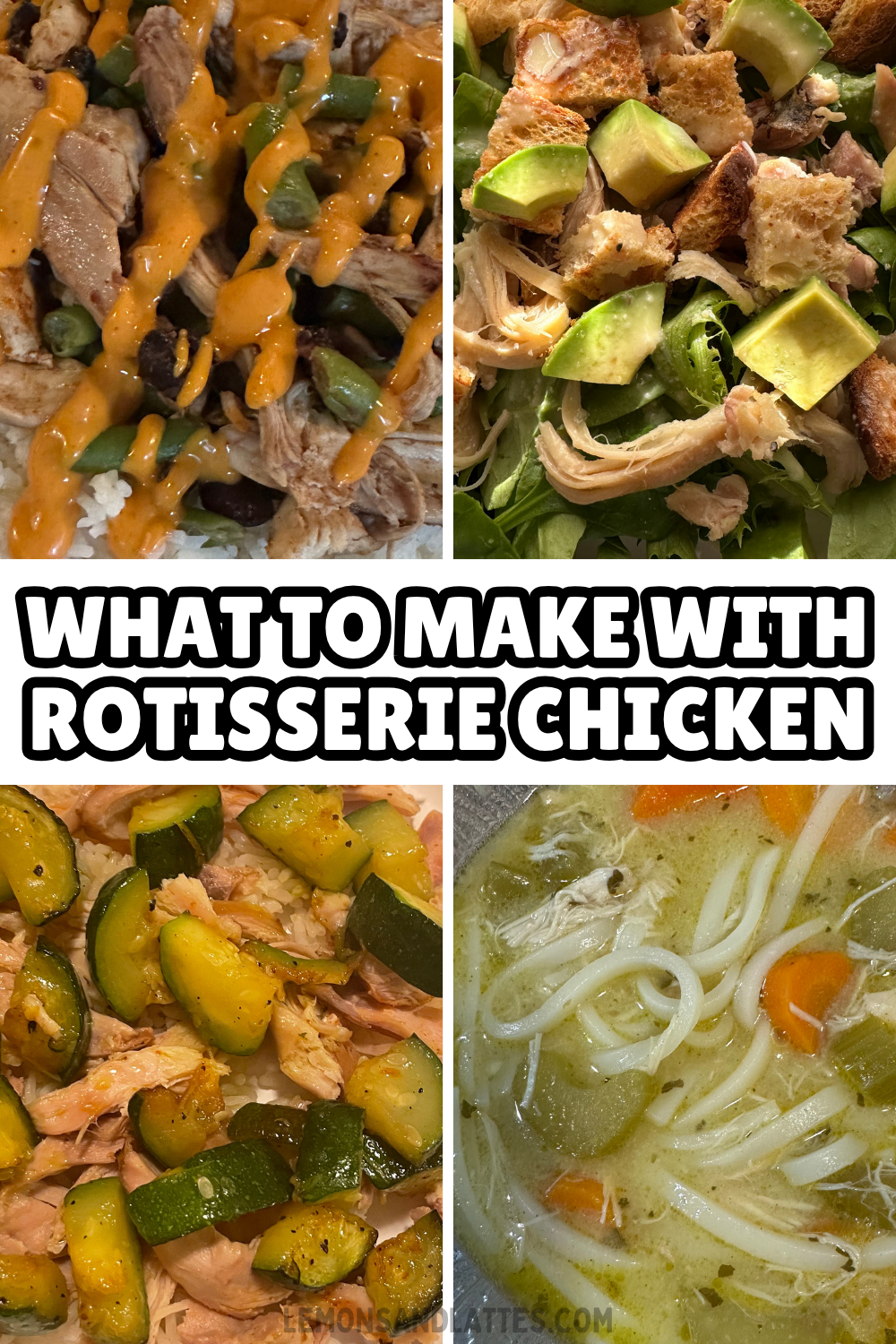 what to make with rotisserie chicken pin2 This post may contain affiliate links. Please read my disclosure for more info.